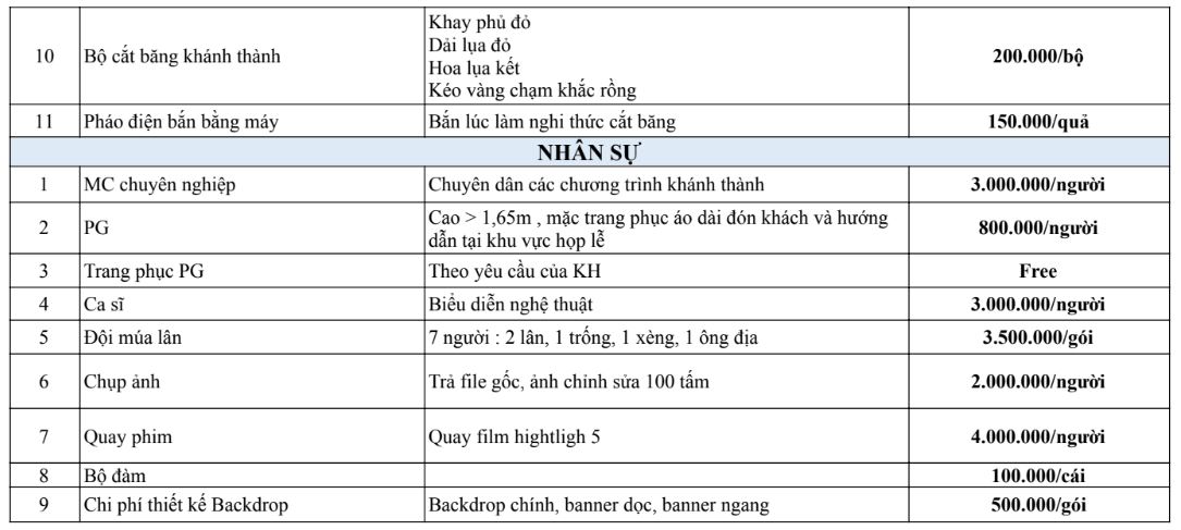 4. Tham khảo giá tổ chức sự kiện khánh thành hiện nay